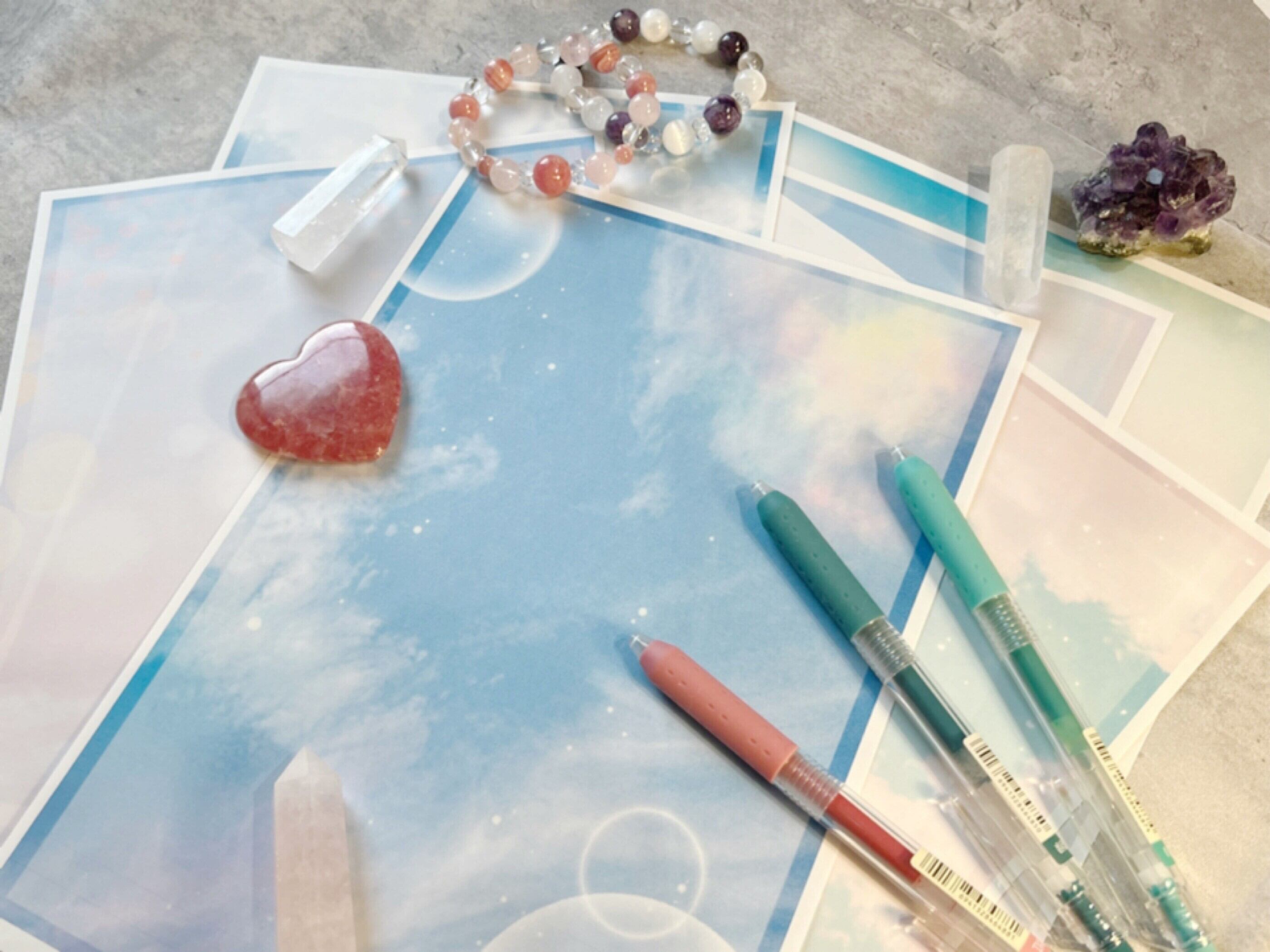 シリーズ第1弾『SKY -空-』 空の風景を切り取ったような、神秘的で優しい色合いのデザインペーパーです。 ※こちらの商品はデジタルデータ(PDF)でのお渡しです。 印刷物の発送はございませんので、ご自身で印刷してご利用ください。 サイズ:A4版(横向き仕様) セット内容:20枚(全デザイン) A4版は横向きデザインになっており、半分に折り製本してノートのようにご使用いただくのもおすすめです。 ※家庭用のホチキスで製本する場合は、10〜13枚程度までをおすすめします。 それ以上まとめたい場合は、製本クリップや専門店での製本をご利用ください。 そのままメモやノートとして使うのはもちろん、スクラップや日記、アイデアノートなど自由にご活用いただけます。 用途 便箋 ノート メモ 日記 スクラップ 工作・クラフト制作 など おしゃれな「文房具」として日常使いにも、願い事を書く「スピノート」としても。 空のページに、あなたの思いをのせてください