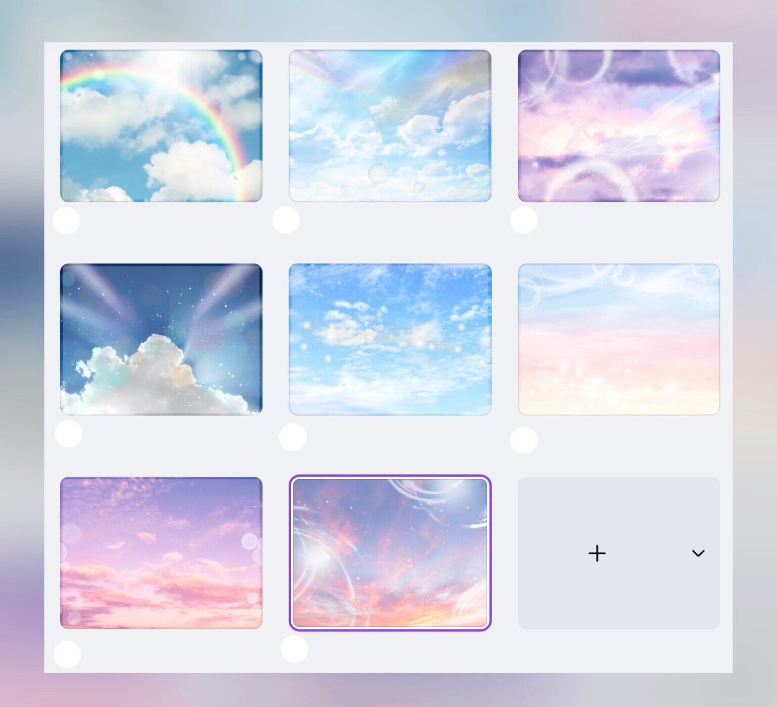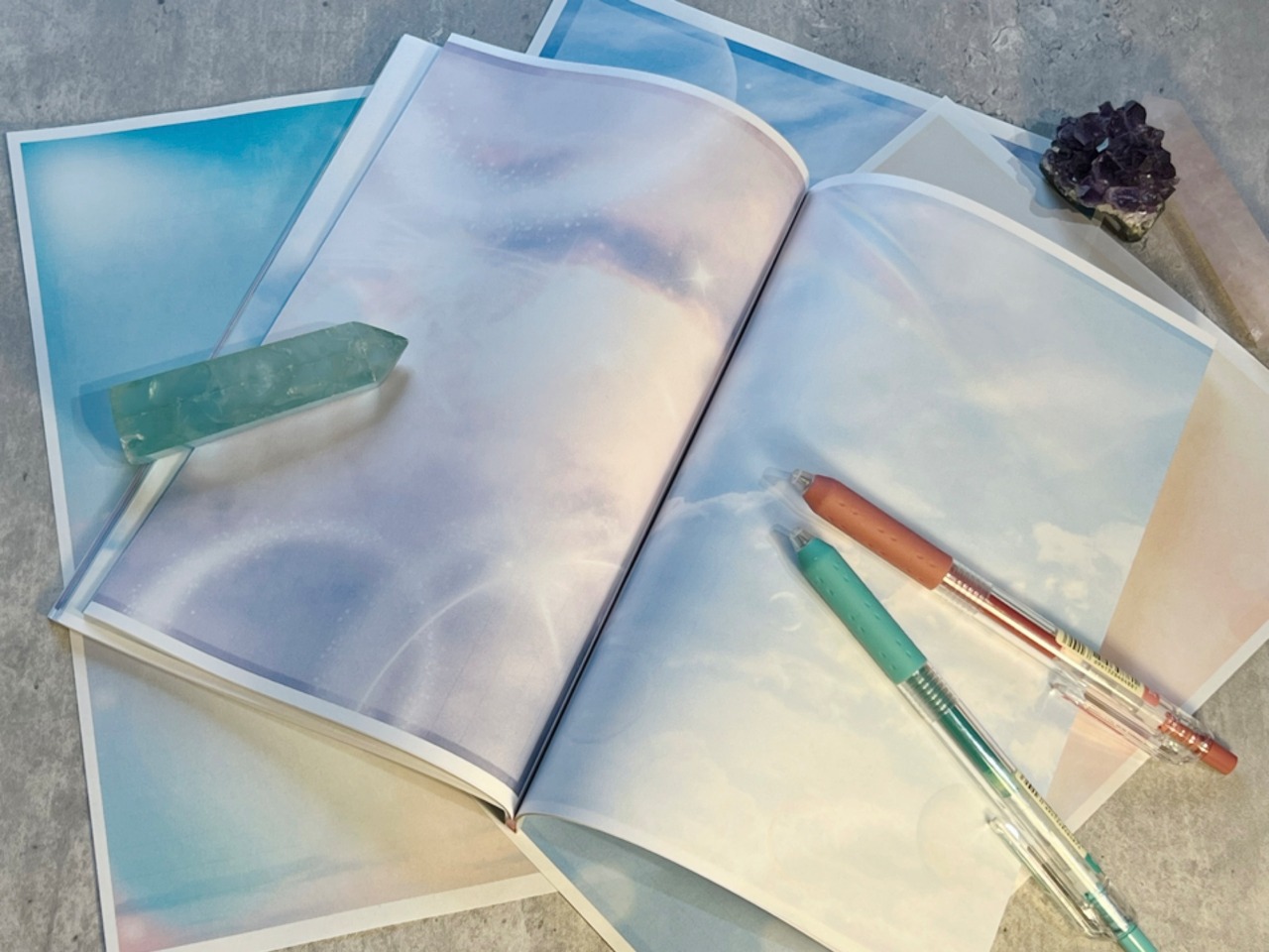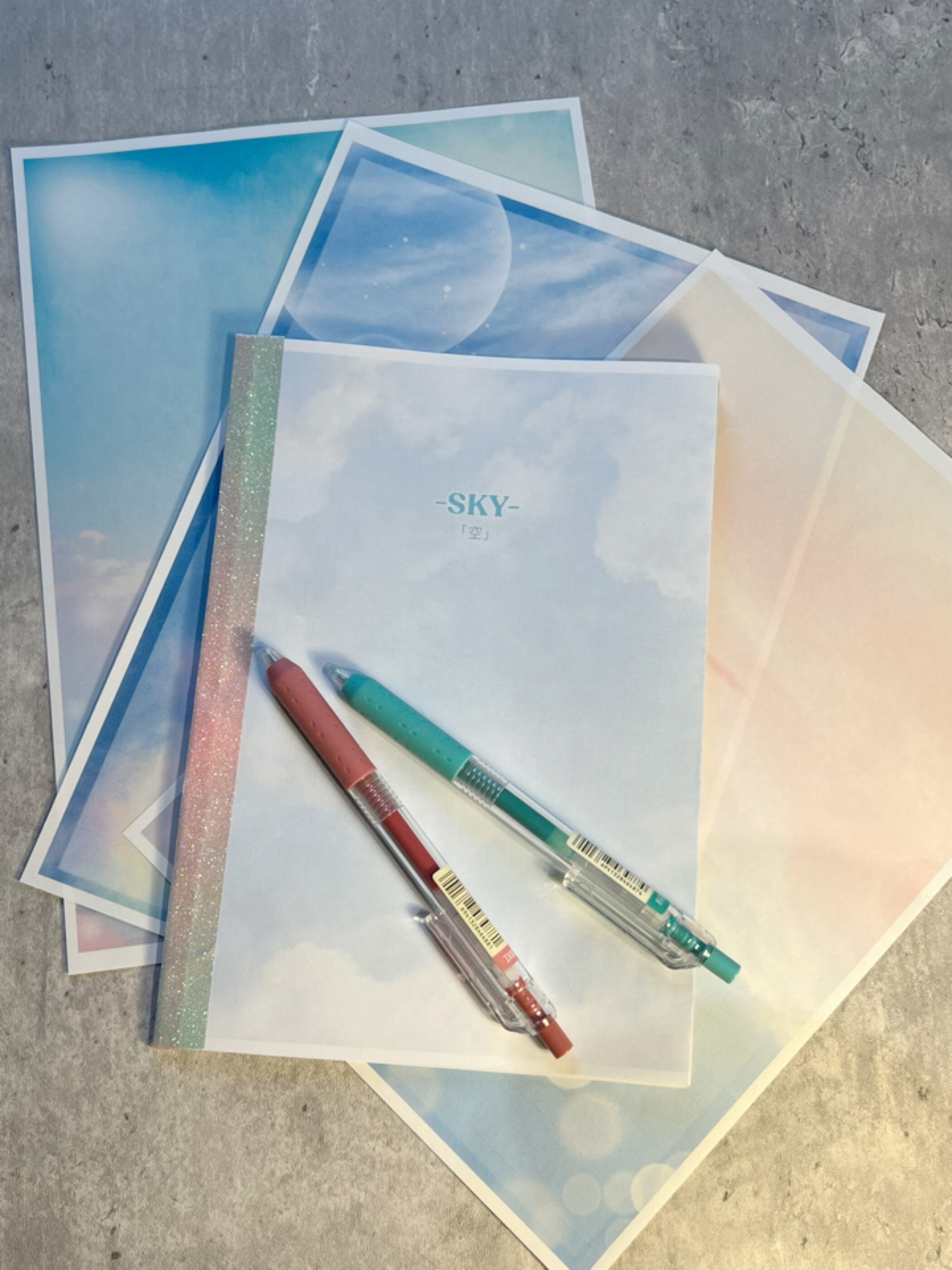 空の風景を切り取ったような、神秘的で優しい色合いのデザインペーパーです。