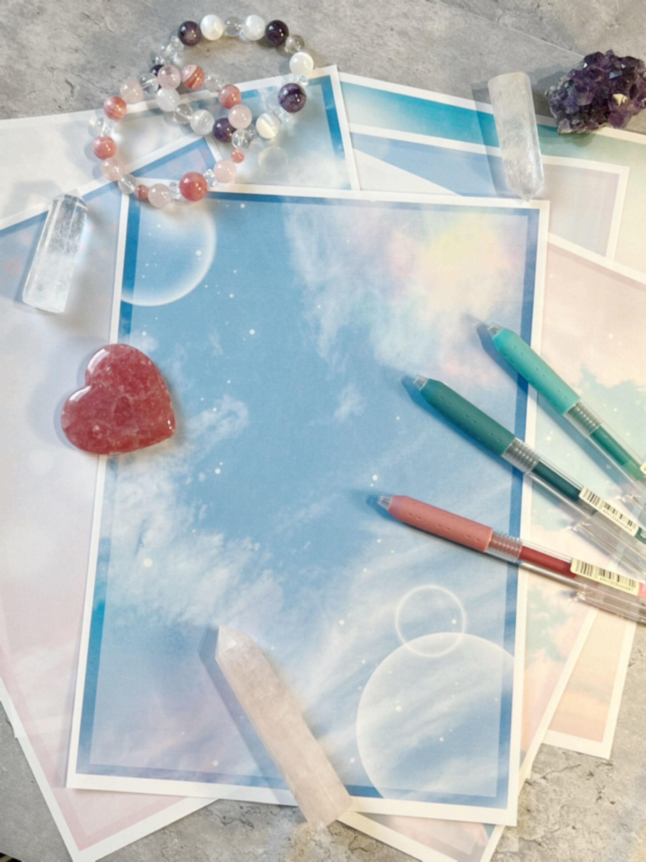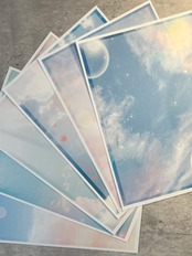 空の風景を切り取ったような、神秘的で優しい色合いのデザインペーパーです。